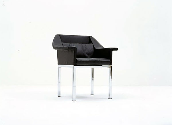 The Revers chair from the Italian manufacturer Meritalia. Legs made of chromed metal. Seat and back are covered with skin. Available in a wide variety of colors. In addition, it is proposed decorative pillow.