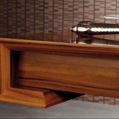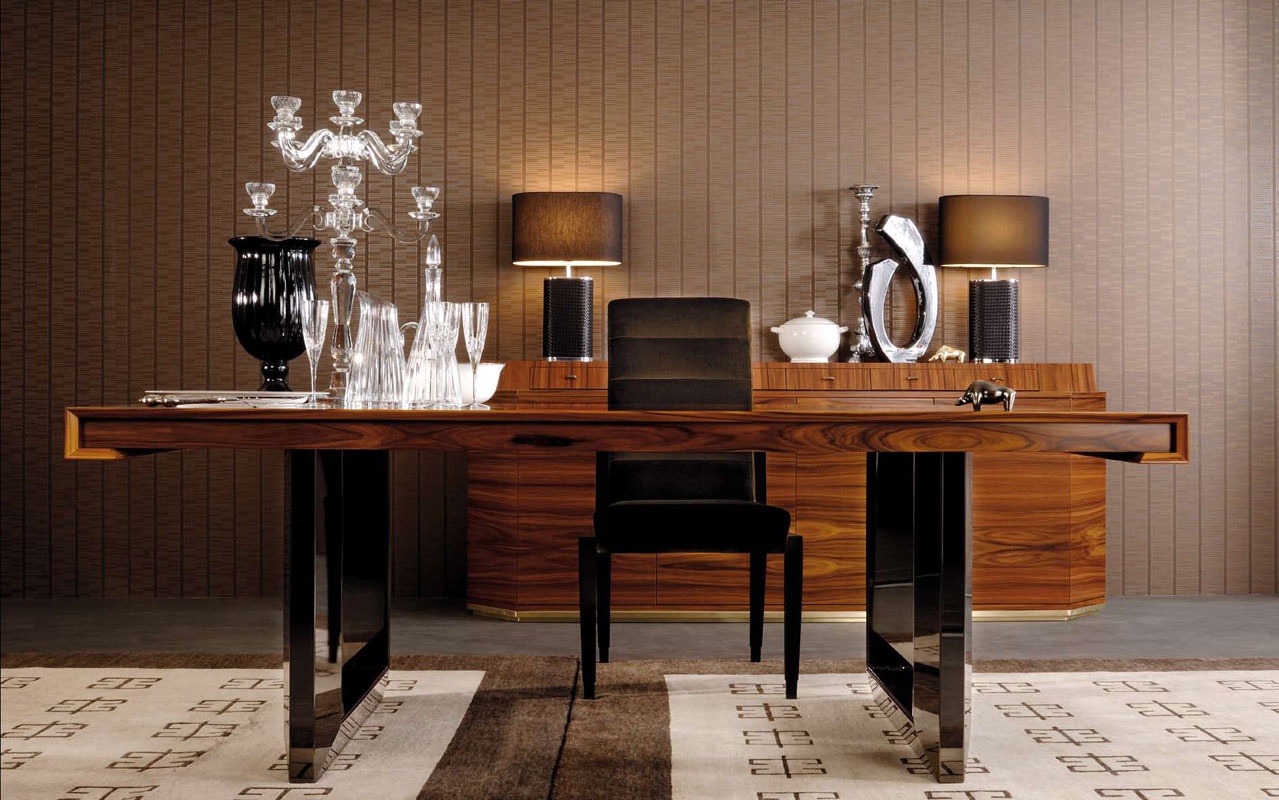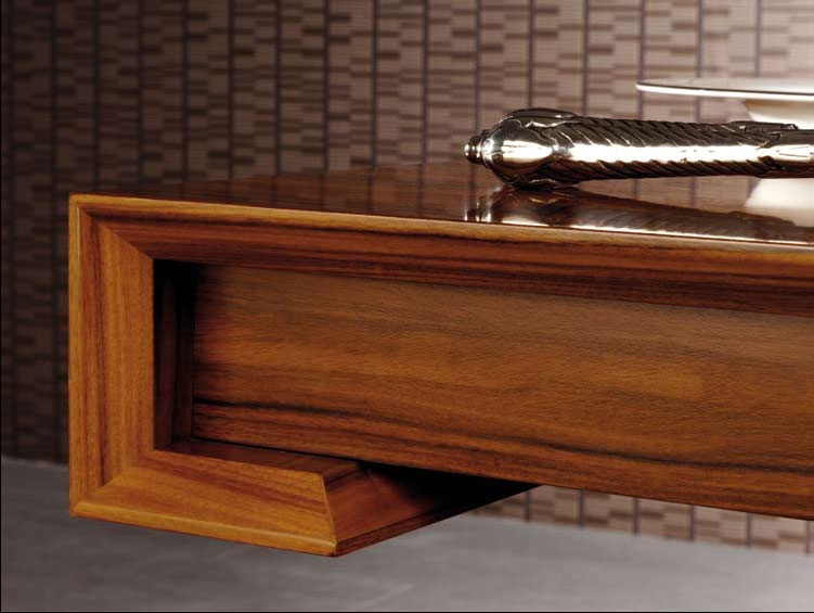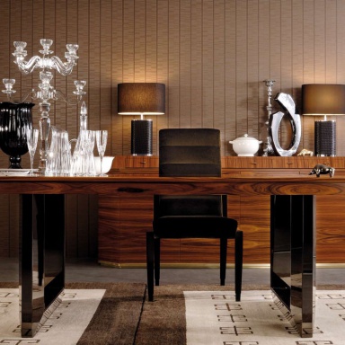 Folding table SANTOS Italian manufacturer MOBILIDEA. The proposed model of the table is made in the style of art Deco. The top is made of durable solid wood dark shade. Perfect for home and office space. The company offers an original scheme of the sliding table.