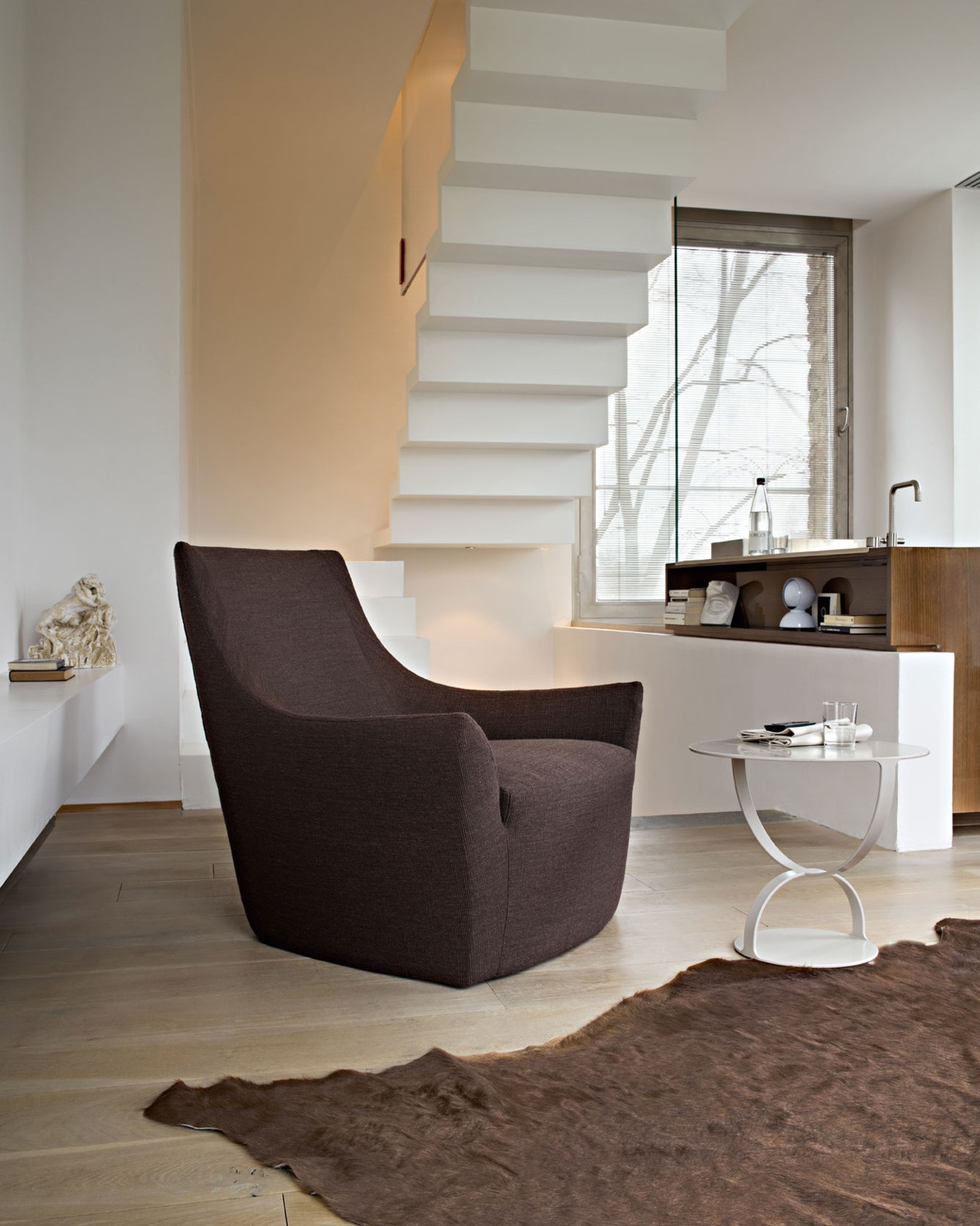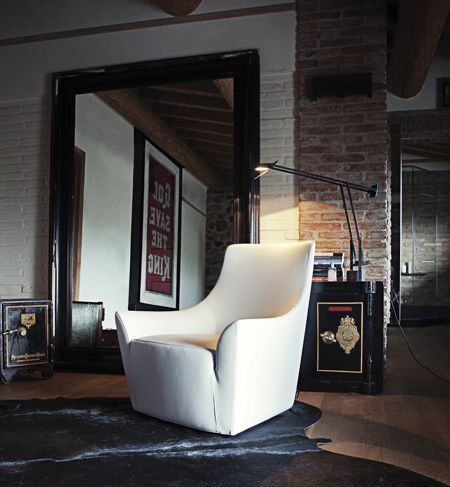 The Monterrey chair from the Italian manufacturer Arketipo. The frame is made of metal, filler - foam, upholstery - textiles or leather from the company portfolio. Model with a high back. The perfect choice for a living room in modern style. Product color brown.