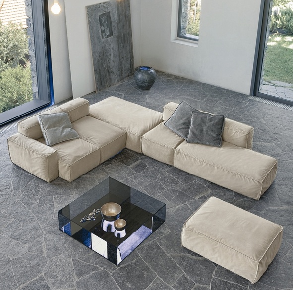 Peanut B Ottoman from the Italian manufacturer Bonaldo. The frame is made from solid wood, upholstered in leather or fabric from the range campaign. The model is designed for living room in modern style. Colors: beige, gray.