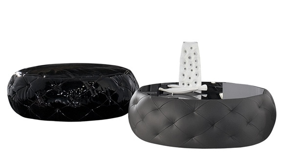 Coffee table round with a filler of polyurethane foam upholstered with leather or cloth top with glass Glam Glass Bonaldo