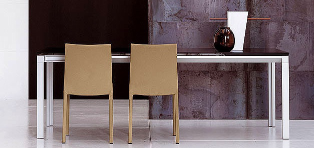 Dining table Chat Double from Italian manufacturer Bonaldo. The frame is made from aluminium, the table top is glass. Model sliding a rectangular shape. The perfect choice for dining room in modern style. Product color brown.