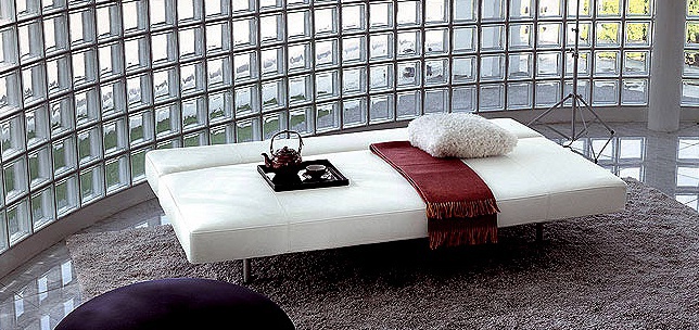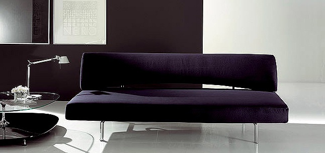 Sofa bed Pierrot from Italian manufacturer Bonaldo. The legs are made of metal, upholstery - textiles from a range of campaigns. The model is designed for modern interiors. The design of complementary decorative pillows. Colours: white, purple.