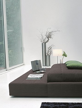 The squaring trait isola bed from Italian manufacturer Bonaldo. The frame is made from solid wood, upholstery - leather or textiles from a range of campaigns. Model double on the podium. A charming choice for the bedroom in modern style. Product color brown.