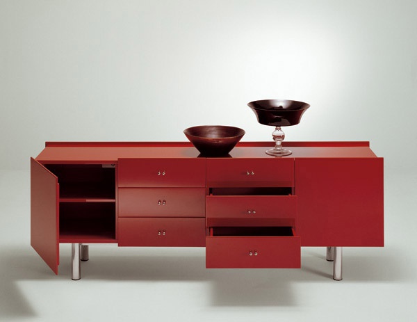 Tobio a chest of drawers from Italian manufacturer Meritalia. Includes several drawers and sections with hinged doors. The frame is made of chipboard. The finish offers a glossy varnish. Legs and metal fittings. The model is made in a modern style.