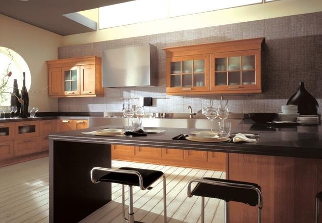 Kitchen with a frame made of MDF and finished veneer wood Palladio, Aster Cucine