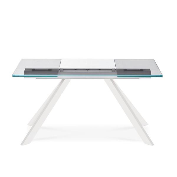 Dining table Zenit from Italian producer Midj. Frame made of metal. Offered lacquer finish in white. The rectangular table top is made of transparent glass. The working surface can be increased due to the additional tabs. The model is made in a modern style.