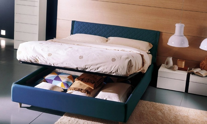 Milly bed from Italian manufacturer Bontempi Casa. Upholstery - leather or textiles from a range of campaigns. Model double with upholstered headboard and drawer storage. A charming choice for the bedroom in modern style. Colors: white, red, blue.