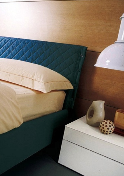 Double bed with soft headboard upholstered with leather or cloth Milly, Bontempi Casa