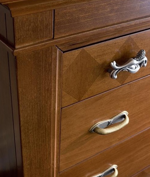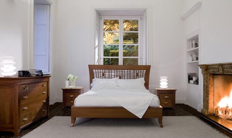 Bed 9081 / 9080 / 9091 / 9090 / 9087 / 9083 / 9093 from the Italian manufacturer Bruno Piombini. The frame is made from solid poplar. Model double bed with high carved headboard. A chic choice for the bedroom in modern style. Colors: natural wood color, brown.