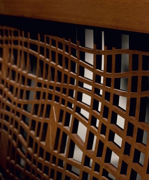 Double bed with carved headboard on a frame of solid poplar 9081 / 9080 / 9091 / 9090 / 9087 / 9083 / 9093, Bruno Piombini