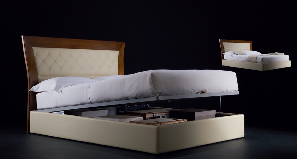 Double bed with a podium on a frame of solid poplar 9088, Bruno Piombini