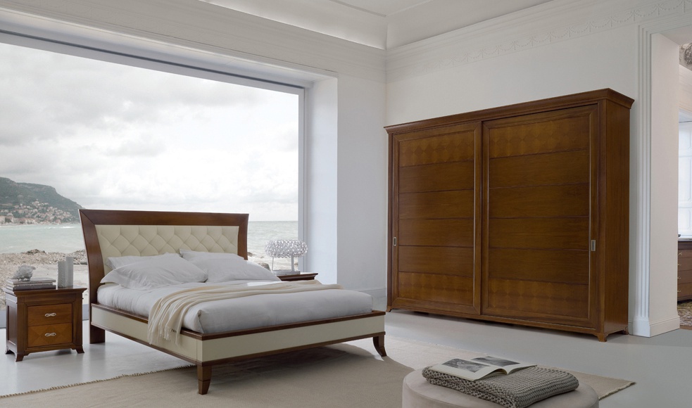 Wardrobe 9094 from the Italian manufacturer Bruno Piombini. The frame is made from solid poplar. The doors are sliding. A charming choice for the bedroom in modern style. Colors: natural wood color, brown.