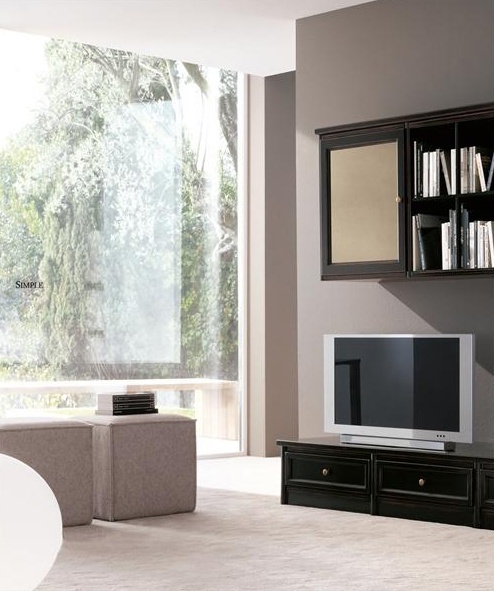 Modular storage system 70 Comp from the Italian manufacturer Bruno Piombini. The frame is made from solid wood, finish - veneer wood. Facade - aged. Module for books and TV. The wall is designed for the living room in a modern style. Product color black.