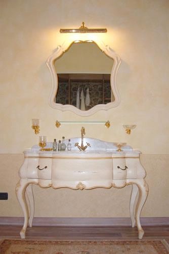The Cabinet under the sink Bagno 3 from the Italian manufacturer Arcari. The frame is made from solid wood. The model is carved, with drawers. The perfect choice for a bathroom in a classic style. Colors: white, Golden.