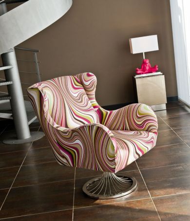The chair on a rotating basis Gioconda from the Italian manufacturer Creazioni. Model on a steel frame. Seat and back upholstered. Upholstery textile from the company portfolio. The chair is designed in modern style.