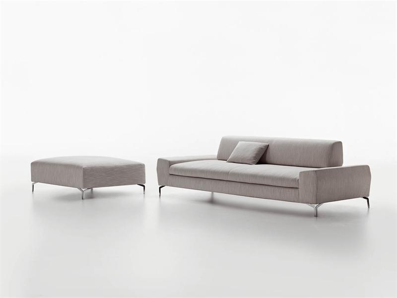 Double sofa Tea Time sofa from Italian manufacturer Molteni. The frame is completely hidden. Legs in chromed metal. The upholstery is leather or textile. Available wide range of color options. The filler is not deformable polyurethane foam. Complements the design of the stool of similar design.