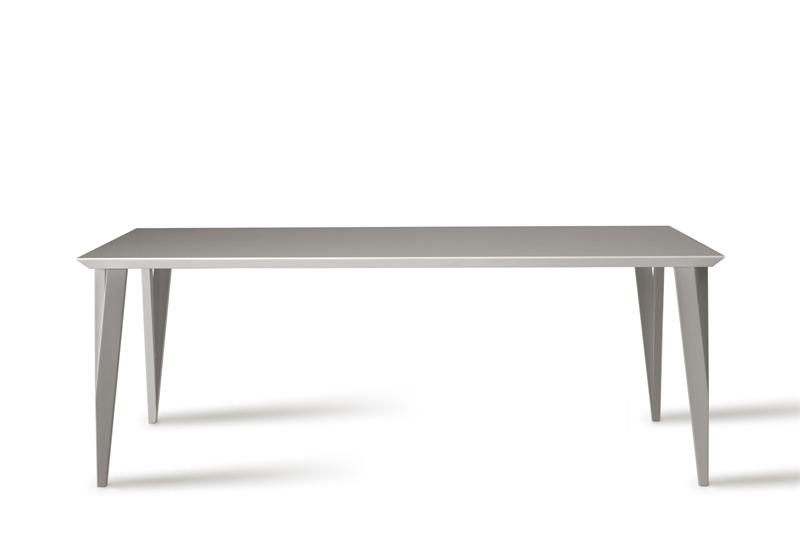 Dining table from the Italian manufacturer Morelato. Model on high legs extended at the top. The top is rectangular. Material - solid wood. The surface is treated with a varnish of white color. The table is manufactured in contemporary style.