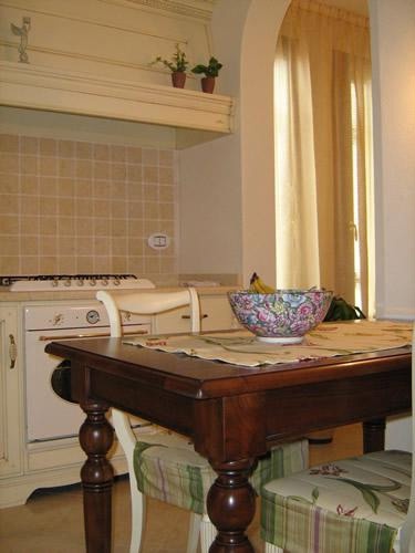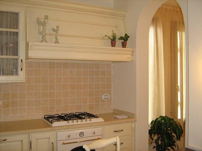 Kitchen with wooden case, marble and upholstery of textile fabric Cottage 2, Arcari
