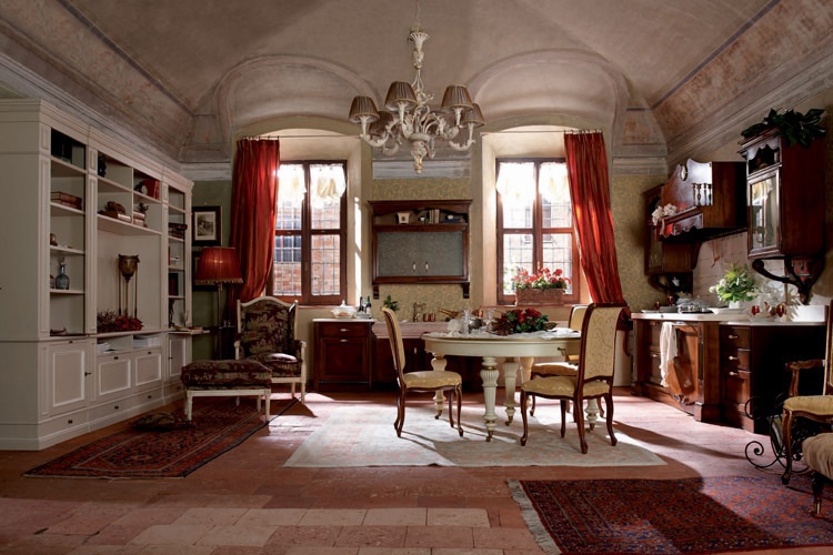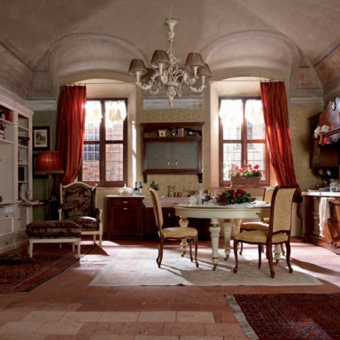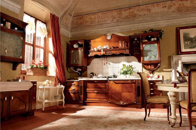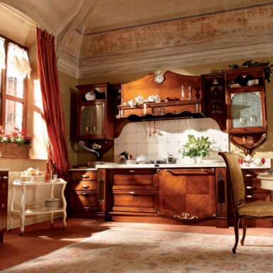 Set for the kitchen Melograno 7 from the Italian manufacturer Arcari. The frame is made from solid wood, countertop - marble. Front - glass/solid wood. Set in the style of Provence. Colours in stock.