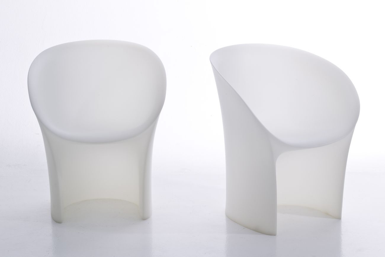 The Moon chair from the Italian manufacturer Moroso. Model with a rounded back and armrests. The frame is made from polyethylene. Available in lacquered finish, metalized lacquer or colored polyethylene. Color set to choose from the catalog factory. Chair by designer Tokujin Yoshioka can be used both indoors and outdoors.