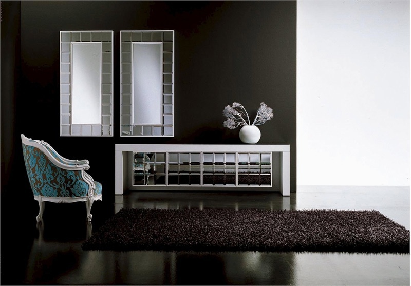 The Diamond dresser from the Italian manufacturer Rattan Wood. The frame is made from solid wood, front mirror glass. The model is designed for modern interiors. Colours in stock.