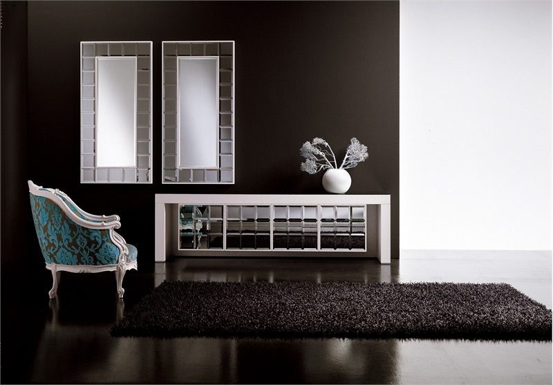 Wall mirror Diamond from the Italian manufacturer Rattan Wood. The frame is made of solid wood. The model is rectangular. A perfect choice for interior decoration in a modern style. Product color grey.
