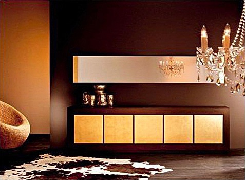 Nightstand Shiny from the Italian manufacturer Rattan Wood. The body is made from solid wood and finished in gold leaf. The model is designed for living room in modern style. Colours in stock.