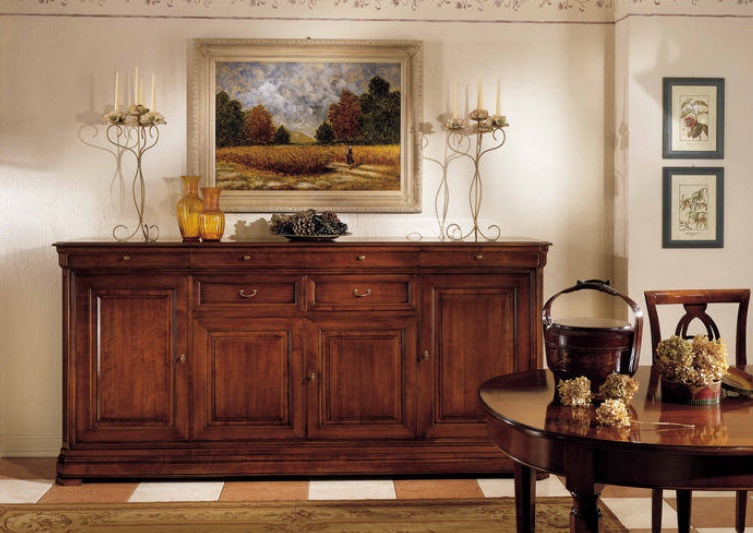 Chest tricuspid or three 4055/4056 from the Italian manufacturer BTC. The frame is made from solid wood. Model with drawers and hinged doors. A great choice for the interior in classic style. Colors: natural wood color, brown.