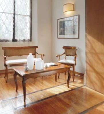414 sofa from Italian manufacturer BTC. The frame is made from solid wood, upholstery - textiles from a range of campaigns. Model double. Perfect choice for classic style. Colors: natural wood color, white, brown.