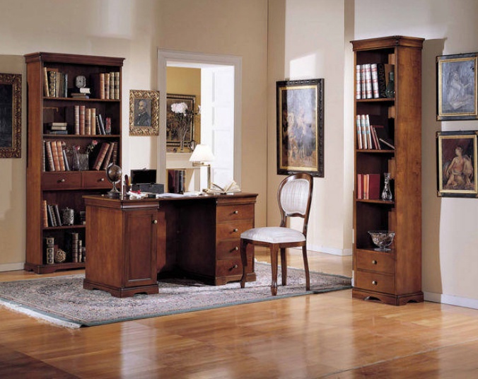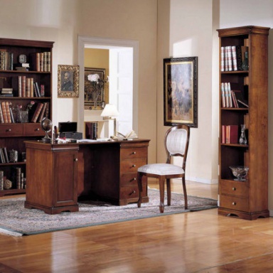 Headsets for the office 429 / 13 / 501/S / 2616 / 430 from the Italian manufacturer BTC. Set includes Desk with drawers, shelving and chair upholstery. The furniture is made of solid wood. Set in a classic style. Colors: natural wood color, brown.