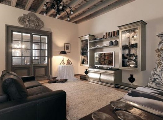 The rack 496 from the Italian manufacturer BTC. The frame is made from solid wood. Module with built-in lighting. A chic choice for interior in classic style. Product color silver.