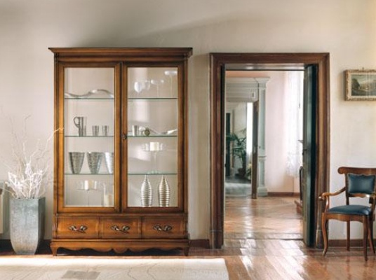 Showcase bivalve 5000 from the Italian manufacturer BTC. The frame is made from solid wood, doors - glass. Model with drawers. Handles - metal. Perfect choice for classic style. Colors: natural wood color, brown.