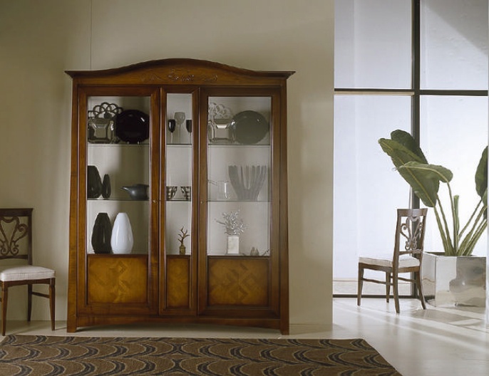 The window 508 by the Italian producer of BTC. The frame is made from solid wood, doors and shelves glass. The model is decorated with inlay. A great choice for the interior in classic style. Colors: natural wood color, brown.