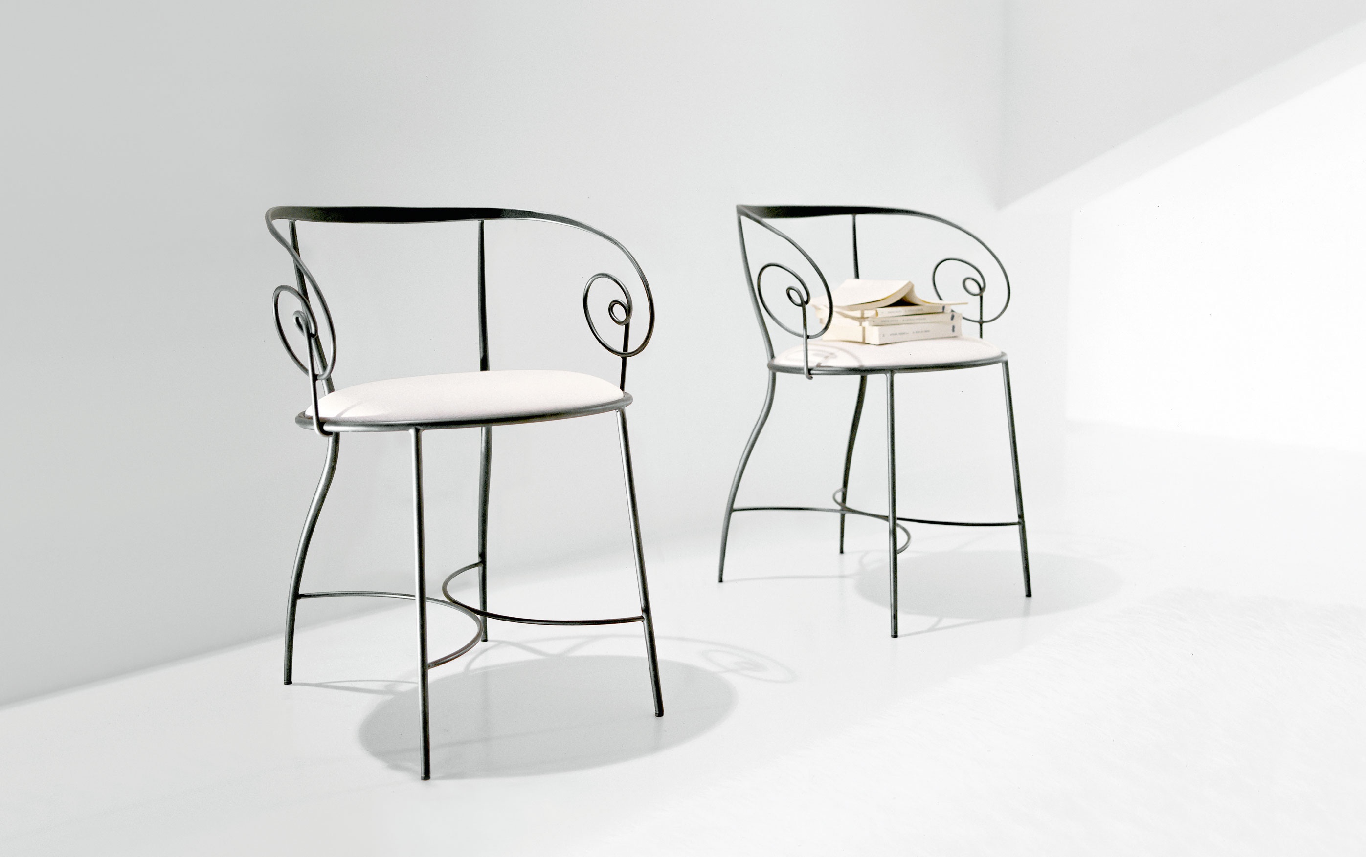 A chair from the Italian manufacturer Ciacci. The frame is made of metal. The seat is a removable pillow trimmed with fabrics. The model is made in modern style.
