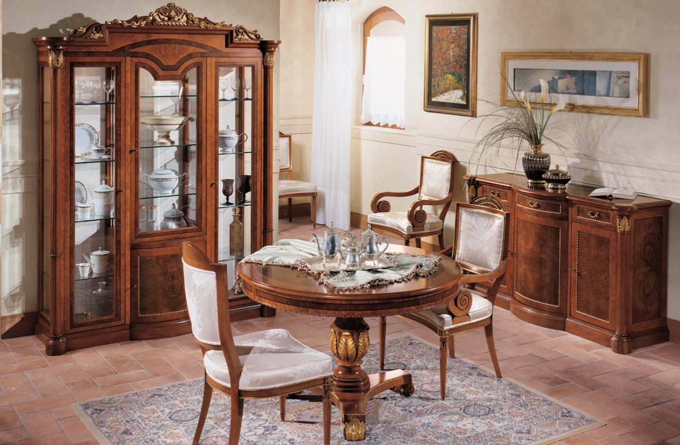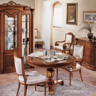 Dining table in classical style from the Italian manufacturer Bianchini. The product is made from solid wood walnut. Table round shape on one massive carved leg base with three-pointed, designed for four seats. The surface is treated with a special formula preserves the natural color of wood and prevents from damage.