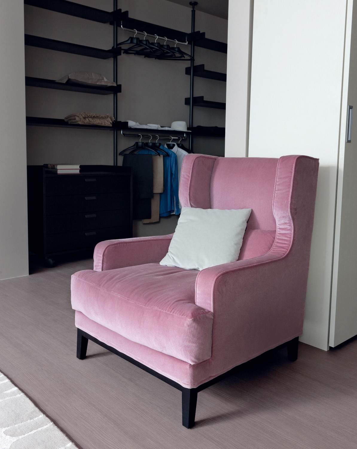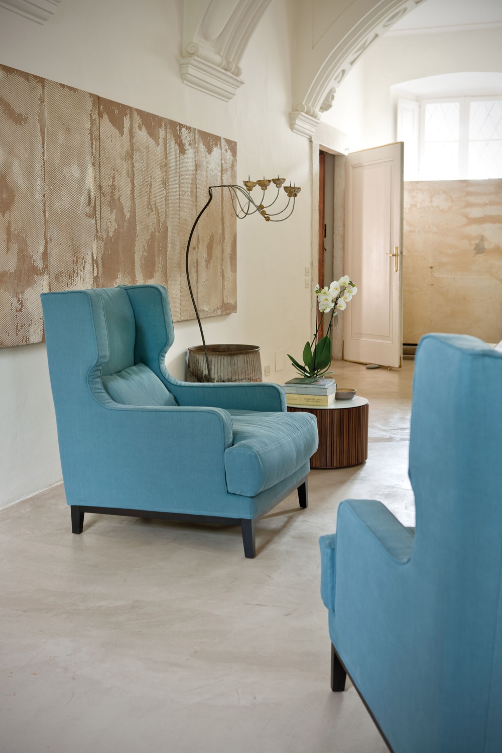 The Camille chair from the Italian manufacturer Porada. The frame and legs are made of solid wood. Finish offered a choice from the collection of the company. Seat and back covered with textiles. Offers a wide range of colors. The filler is not deformable polyurethane foam. Additional comfort is provided by lumbar cushion.