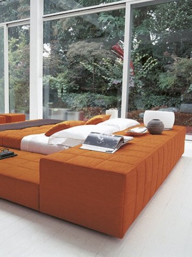 The squaring trait penisola bed from Italian manufacturer Bonaldo. Upholstery - leather or textiles from a range of campaigns. The design of complementary decorative pillows. Model double on the podium. Great choice for the bedroom in modern style. Colors: blue, brown.