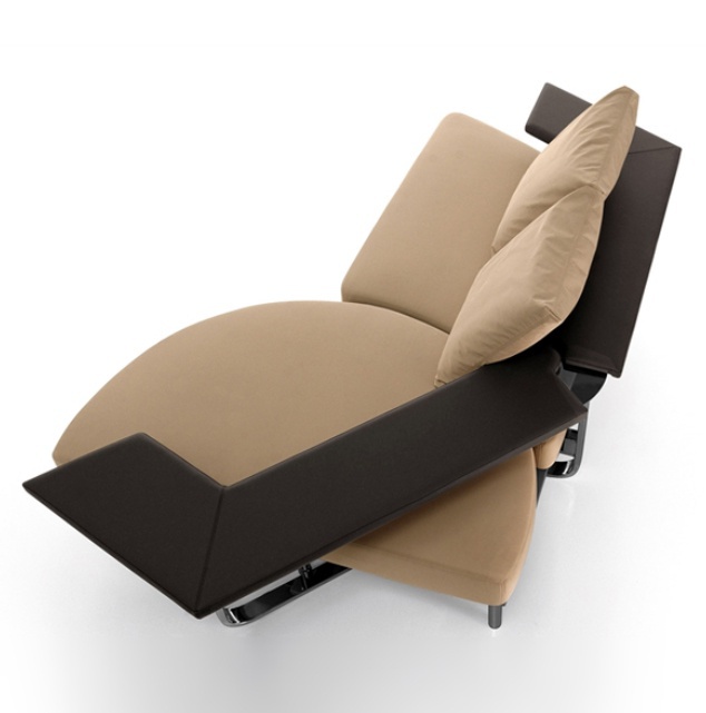 Sofa bed Flat from the Italian manufacturer Bonaldo. The frame is made of chrome steel, filler - foam, upholstery - leather or fabric from the range campaign. The model is designed for modern interiors. The design of complementary decorative pillows. Colors: beige, black.
