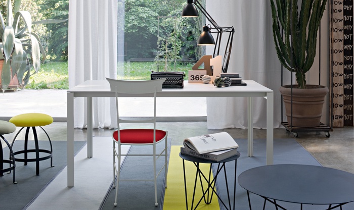 Set for the dining room from Italian manufacturer Ciacci. Consists of dining table and chairs with colored seats. The frames are made of metal. Seat and back made of plastic. Colors to choose from a range of companies. Set is manufactured in contemporary style.