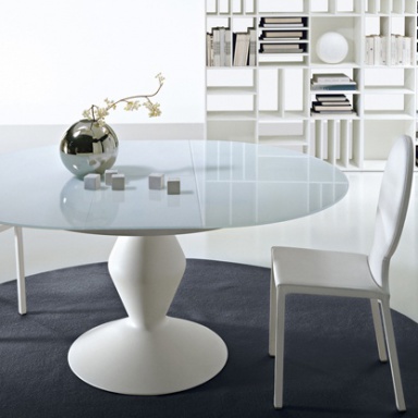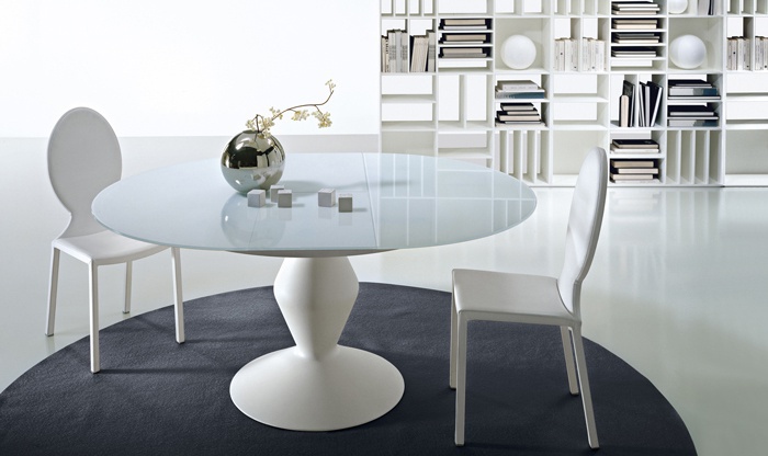 Set for the dining room from Italian manufacturer Ciacci. Consists of a dining round table and chairs with oval backs. The frames are made of metal, glass countertop. Seat and back made of plastic. Set is manufactured in contemporary style. Proposed version in white.