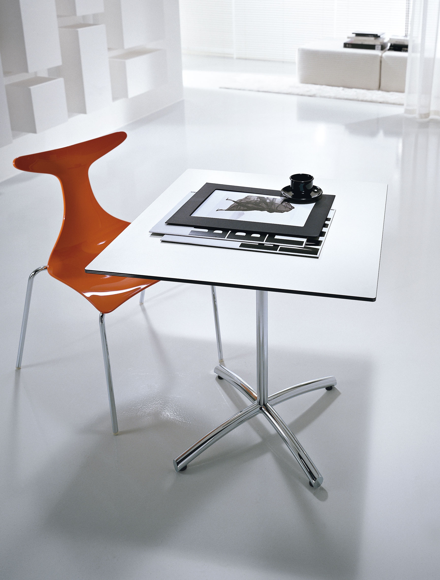 Set for the dining room from Italian manufacturer Ciacci. Consists of a square dining table and chairs. The frames are made of metal. Colors to choose from a range of companies. The backs of the chairs in the shape of petals. Set is manufactured in contemporary style. Proposed version in white and black. Differs practicality and functionality.