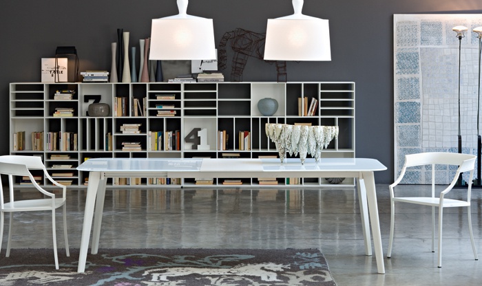 Set for the dining room from Italian manufacturer Ciacci. Consists of dining table and chairs with armrests. The frames are made of metal and plastic. Color scheme in white. Set is manufactured in contemporary style. Differs practicality and functionality.