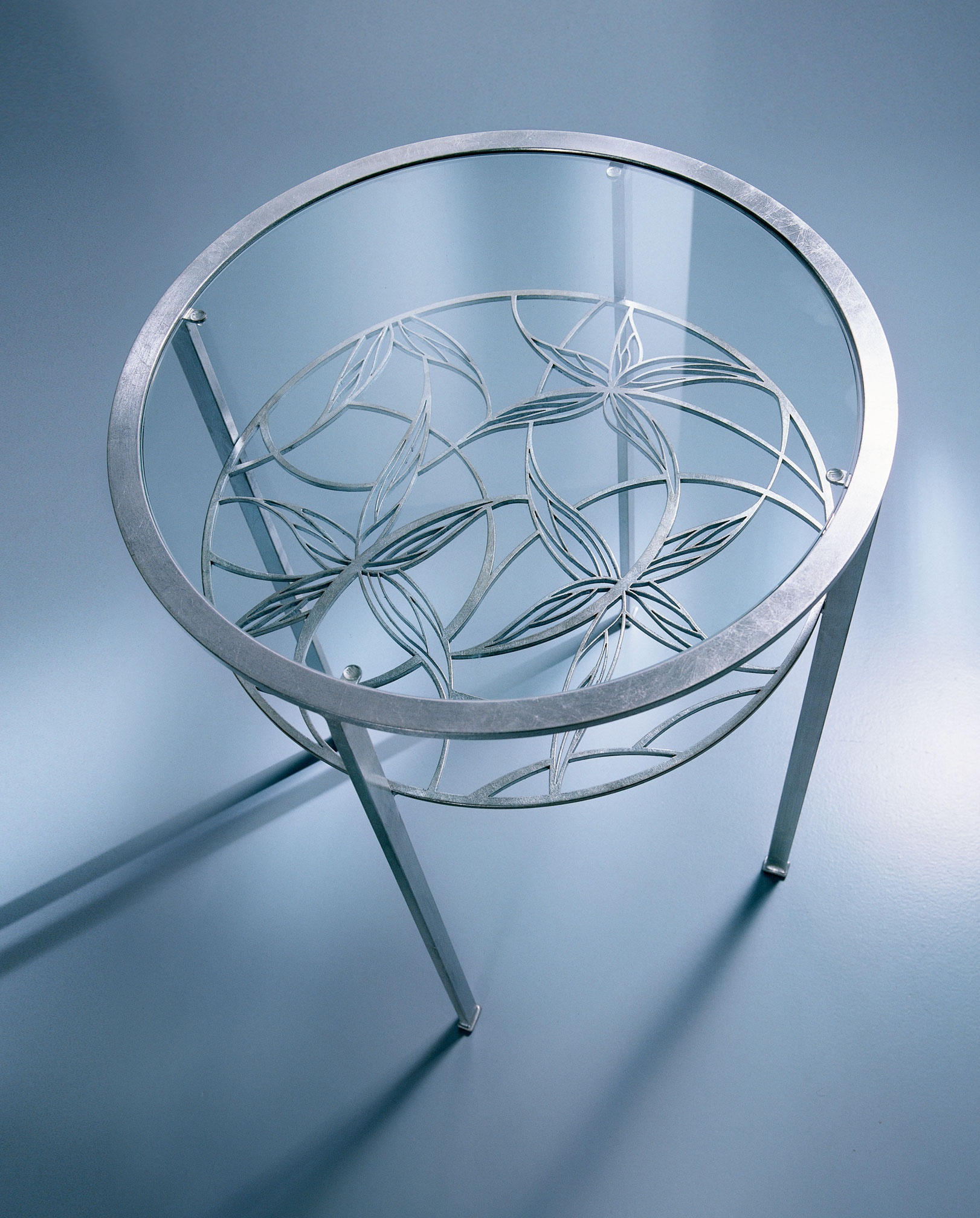 Dressing table from the Italian manufacturer Ciacci. Made of forged metal round shape. Table top glass, shelf is made of metal. The table is designed in modern style.