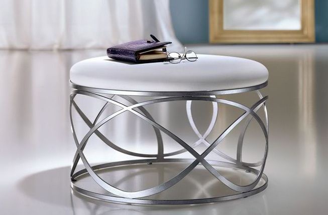 Coffee table from the Italian manufacturer Ciacci. Izgotovleny of wrought iron, covered with silvery. The round tabletop covered with white textile. The table is designed in modern style.