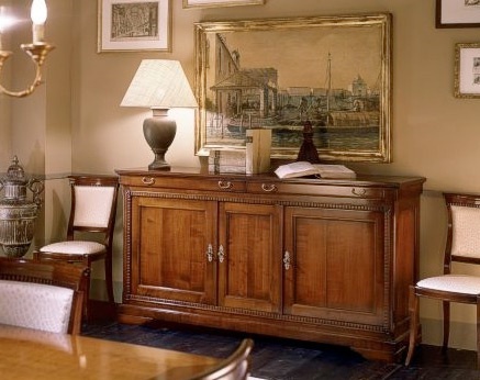 Dresser-chest F401 from the Italian manufacturer Moletta Mobili. The frame is made from solid cherry/walnut. Fittings - metal. Model with drawers and hinged doors. The perfect choice for a living room in classic style. Colors: natural wood color, brown.