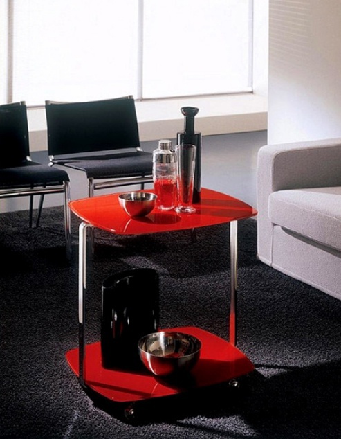 Plasma coffee table from Italian manufacturer Bontempi Casa. The frame is made of steel, top glass. The model will decorate the interior in a modern style. Colors: red, black.