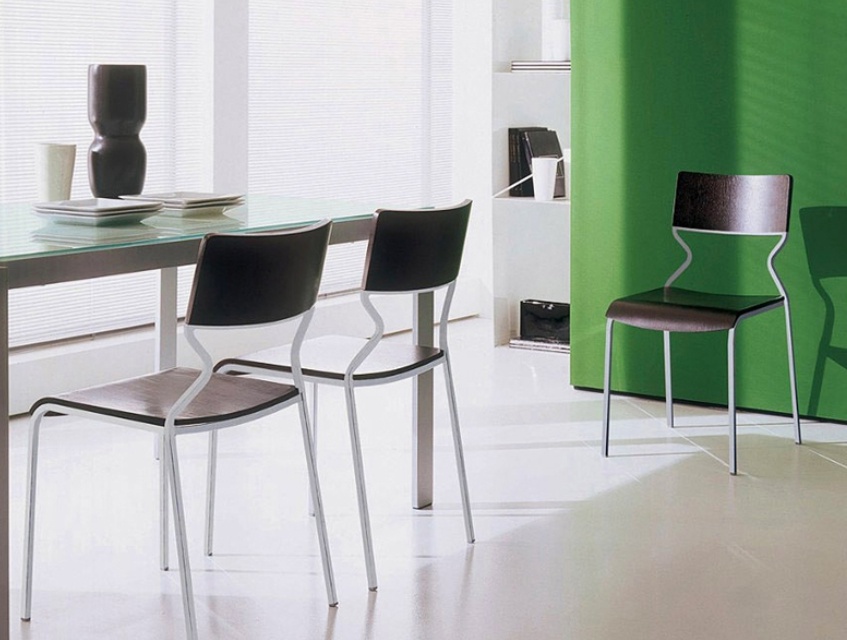 Chair on a metal frame with seat and back made of wood Poppea, Bontempi Casa