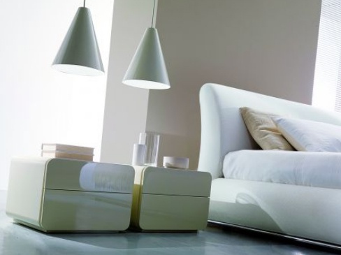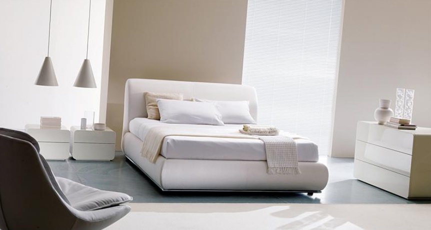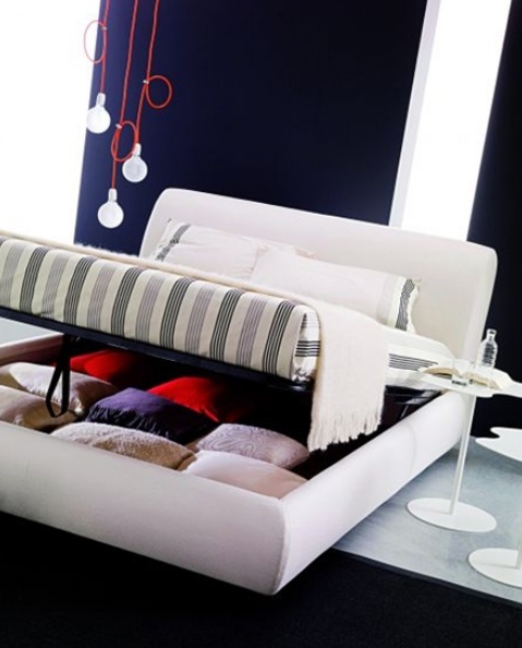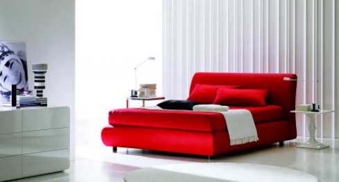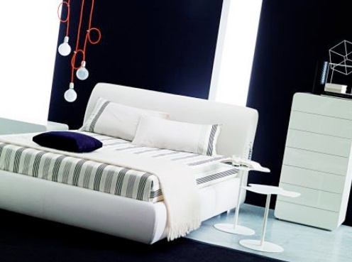 The Portofino double bed from Italian manufacturer Bontempi Casa. The base is made from aluminium, upholstered in leather or fabric from the range campaign. The model will decorate the bedroom in modern style. Colors: white, red.