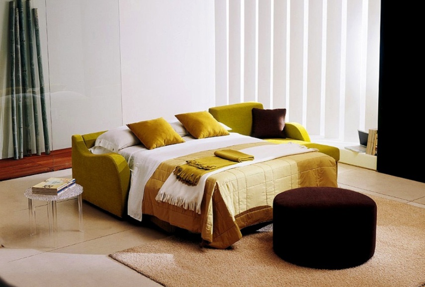 Sofa bed corner Simius from Italian manufacturer Bontempi Casa. The frame is made from solid spruce, filler - foam, upholstery - cloth from a range of campaigns. The model is designed for modern interiors. The design of complementary decorative pillows. Product color yellow.